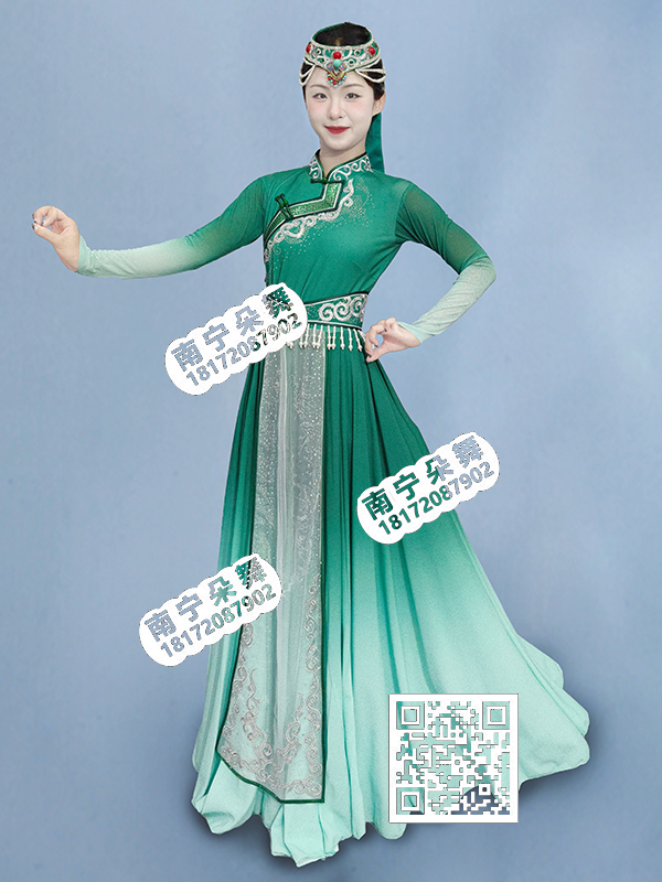 简单描述: 绿色渐变白纱银花吊腰蒙古女服