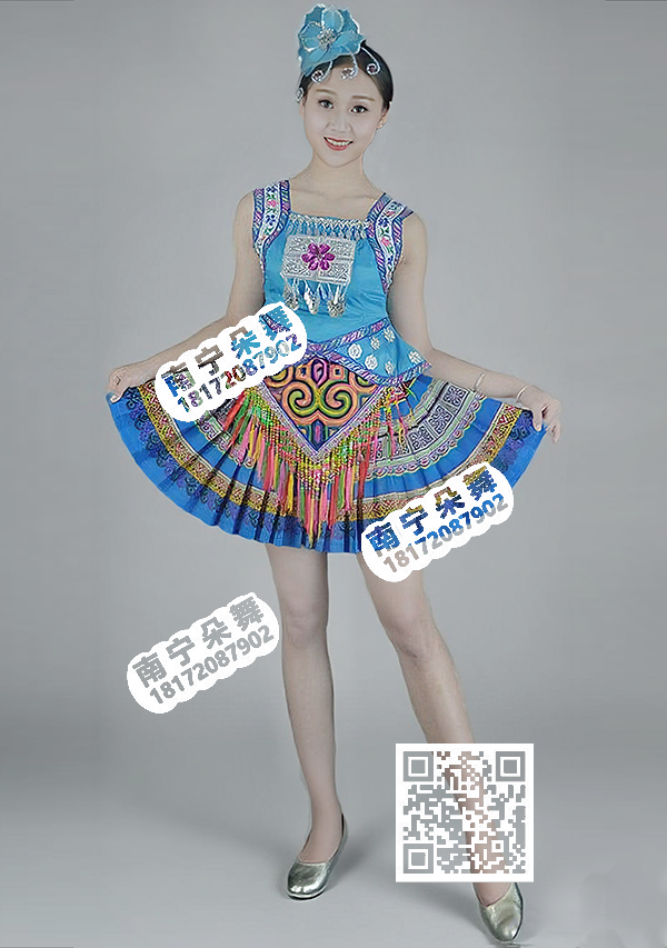 蓝黑红炫彩瑶山瑶瑶族女短裙
