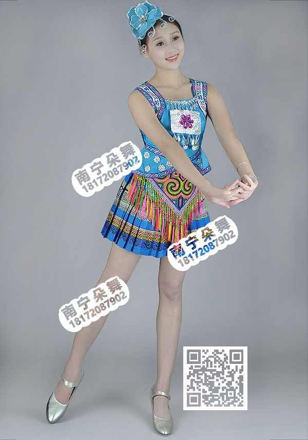 蓝色壮锦无袖壮族短裙