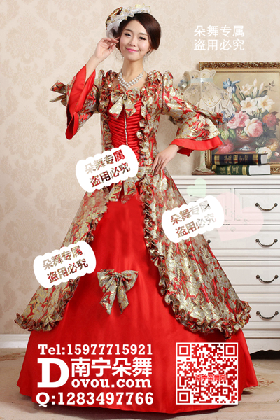 简单描述: 大红欧洲女宫廷服王妃贵妇女皇生日派对宫廷礼服舞蹈服公主服
