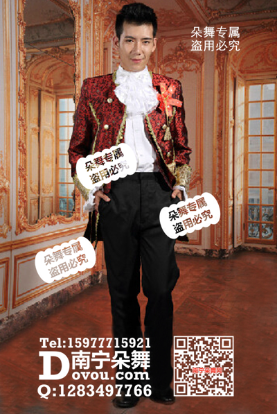 简单描述: 大红英国皇家王子宫廷演出服威廉王子服装影楼宫廷欧式服