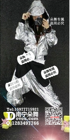 银色连衣帽阔腿嘻哈服